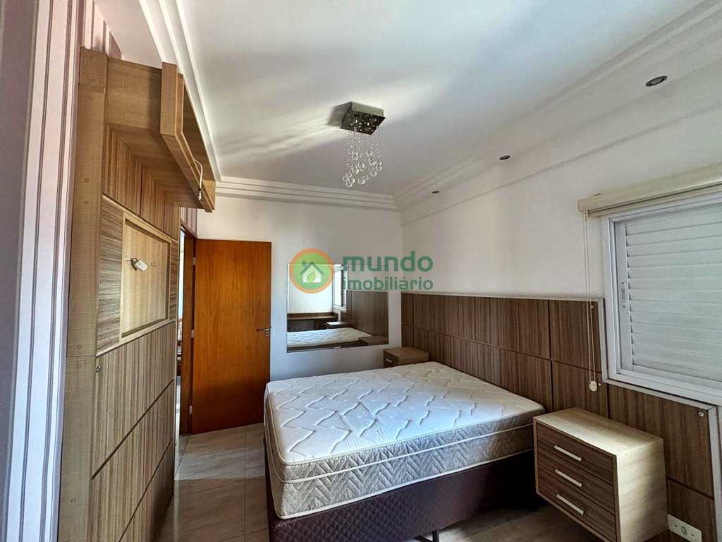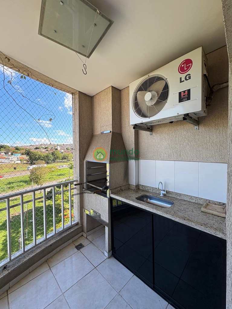 Apartamento inteiro com móveis planejados e Ar condicionado. Possui 3 dormitórios, sendo 1 suíte, 2 banheiros, sala de estar e jantar, varanda gourmet com churrasqueira, cozinha, área de serviço e 2 vagas de garagem.