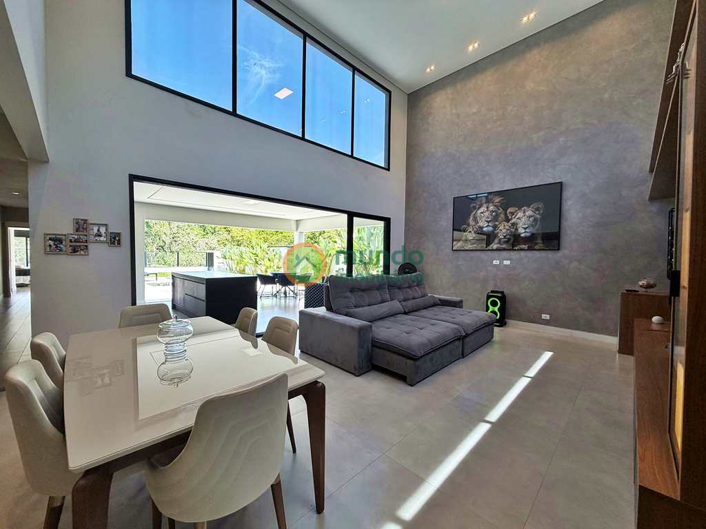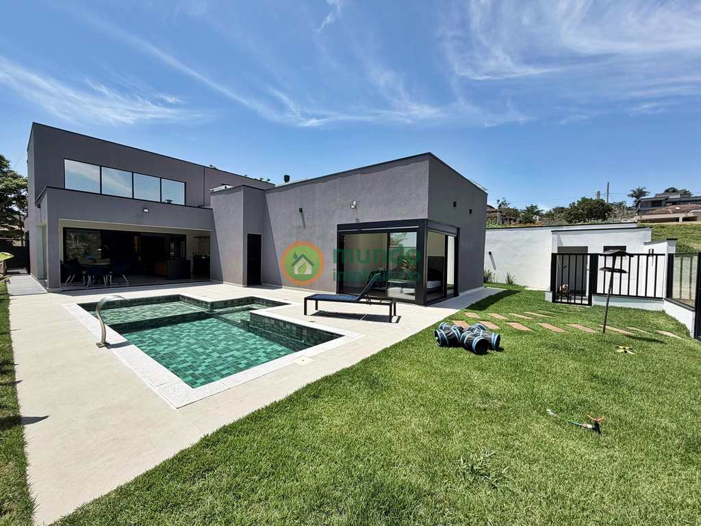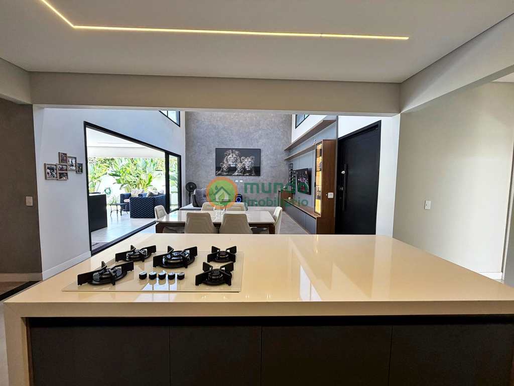 Esta casa está pronta para receber você e sua família com muito conforto. Possui fino acabamento com materiais de primeira linha, ambientes bem iluminados e arejados. São 04 suítes, sendo 01 suíte master com closet e 01 reversível para escritório. Sala de estar e jantar, cozinha toda planejada, área gourmet equipada com churrasqueira e móveis planejados, além de uma bela área externa com piscina.