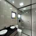 A casa está equipada com energia fotovoltaica, luminárias e lâmpadas de LED, além de interruptores inteligentes preparados para integração com assistentes virtuais. Todos os banheiros possuem gabinetes e a cozinha já vem completa com fogão cooktop e coifa.