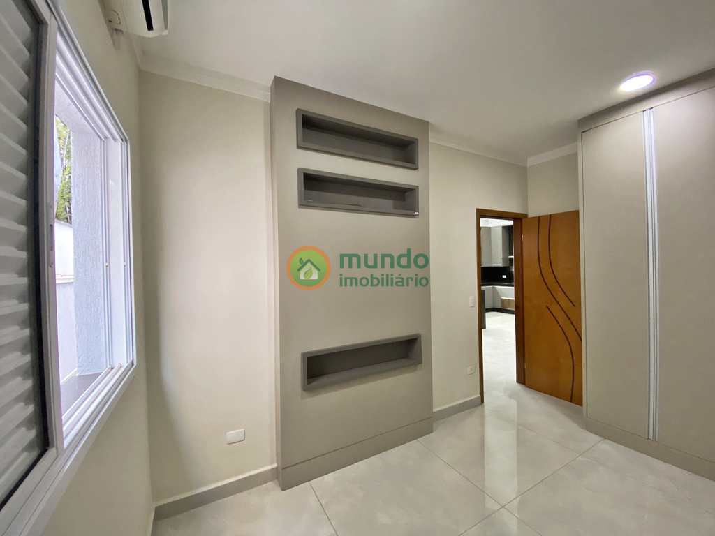 O imóvel possui 3 dormitórios, sendo 2 suítes com closet (1 suíte no piso inferior), sala e cozinha perfeitamente integrados, cozinha gourmet com saída para área da churrasqueira, mezanino, 1 lavabo, 1 banheiro social, despensa, lavanderia, jardim e 2 vagas de garagem cobertas.